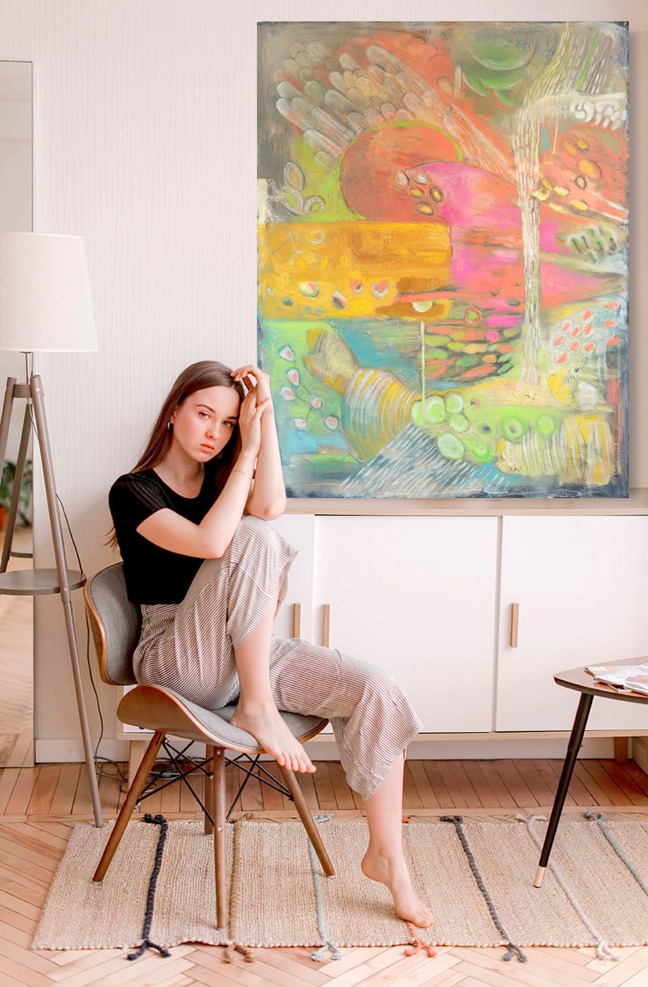 Абстрактная живопись — это игра цвета, свобода эмоций, умение относиться с юмором к жизни. Картина отлично подойдет для оформления офисного и домашнего пространства.